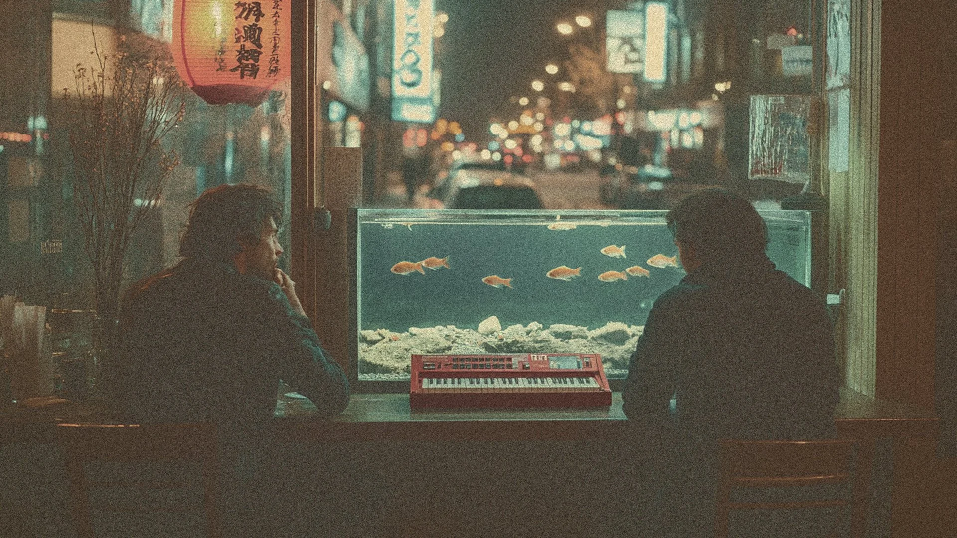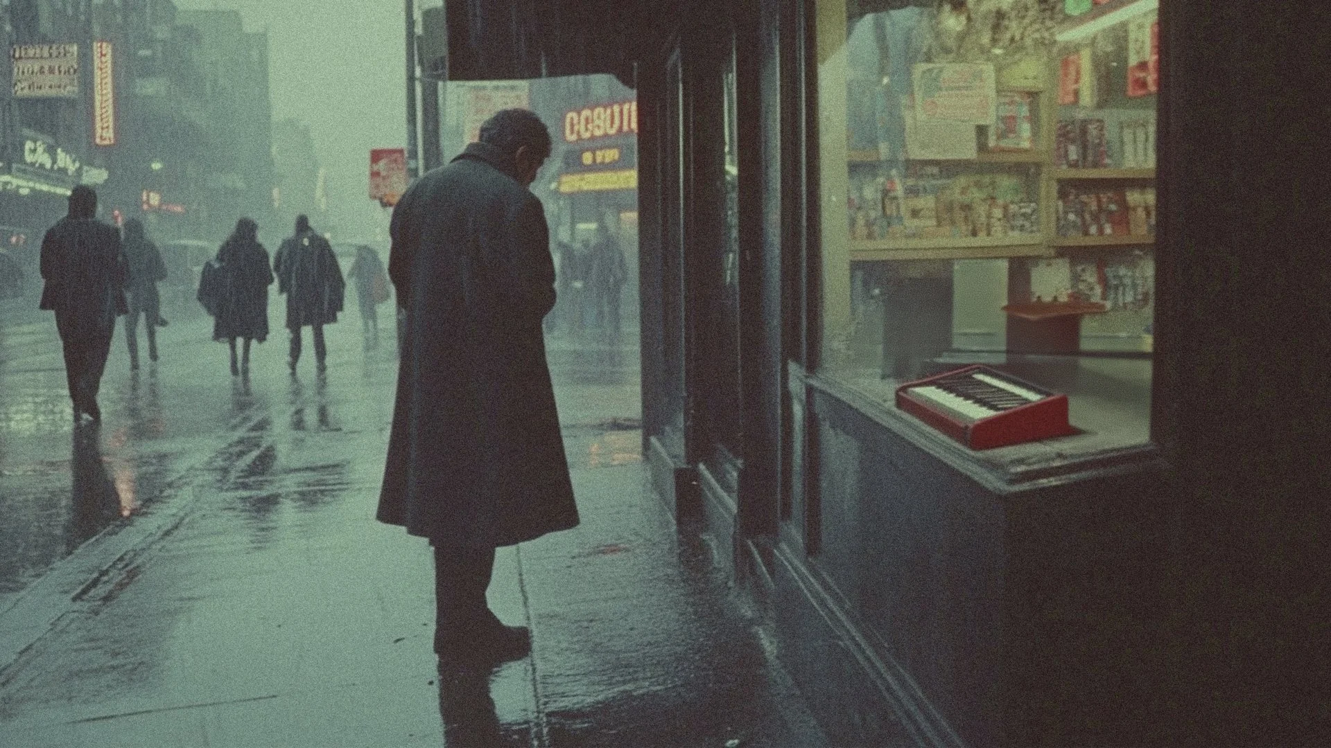 Later, Leonard wanders the streets searching for a belated birthday gift to send his son, he walks into a small electronics shop where a display of RED CASIO KEYBOARDS catches his eye. He flips through machines pre-programmed rhythms, transfixed.