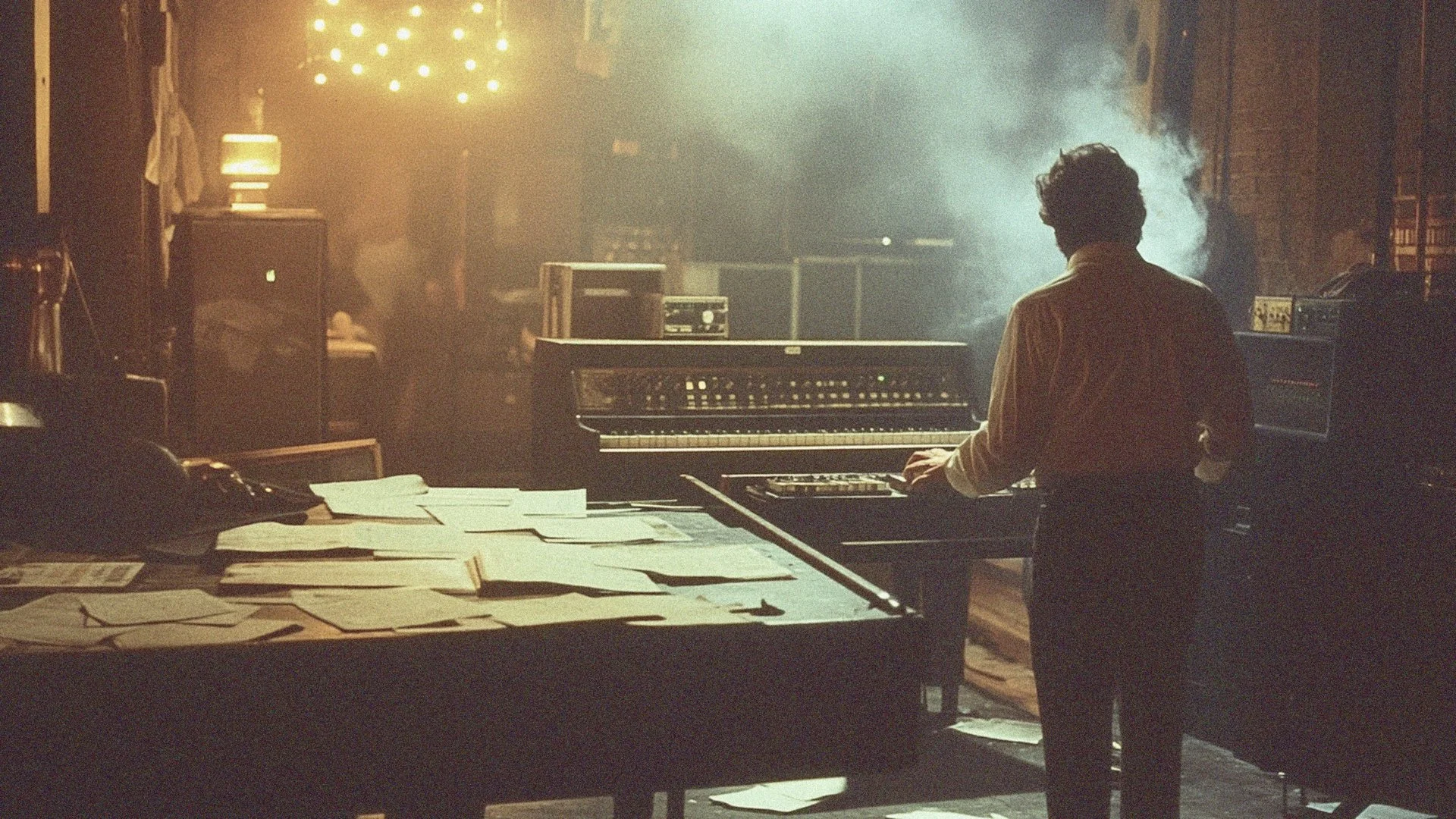 What begins as uncertainty soon transforms into something electric. Leonard's lyrics about a dance at the edge of Holocaust camps paired with synthetic rhythms creates a haunting juxtaposition. As the sessions progress, the studio fills with a rotating cast of Leonard's world – JENNIFER WARNES lending ethereal vocals, LEANNE serving as both engineer and confidante, DOMINIQUE ISSERMANN capturing moments with her camera between passionate exchanges with Leonard in the studio hallway.